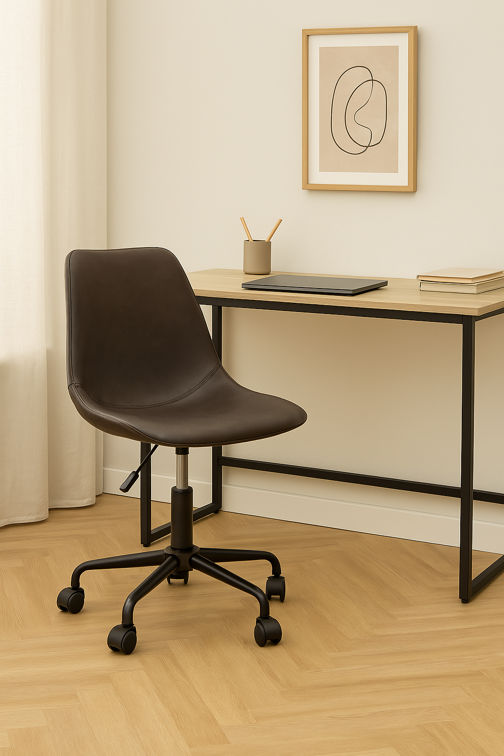 House Nordic Bureaustoel Monaco – Draaibaar – PU Leder Donkerbruin – Verstelbare Zithoogte 46–55,5 cm