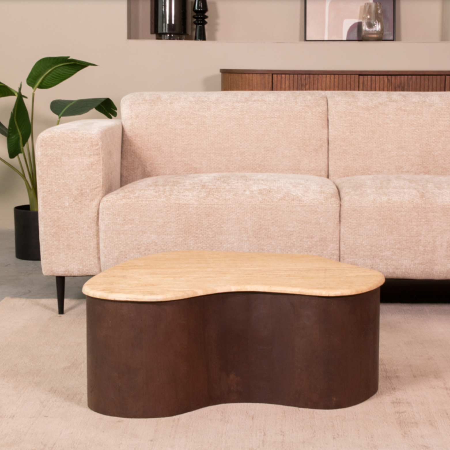 LABEL51 Salontafel Davi - Espresso - Travertin - 80 cm