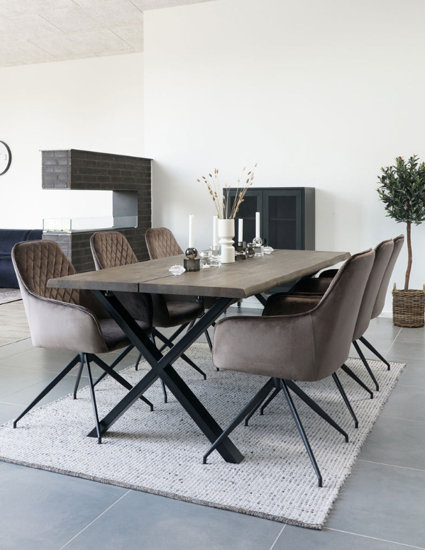 Harbo Eetkamerstoel met draaibare zitting - Stoel met draaibare zitting in champignon fluweel met zwarte poten HN1208