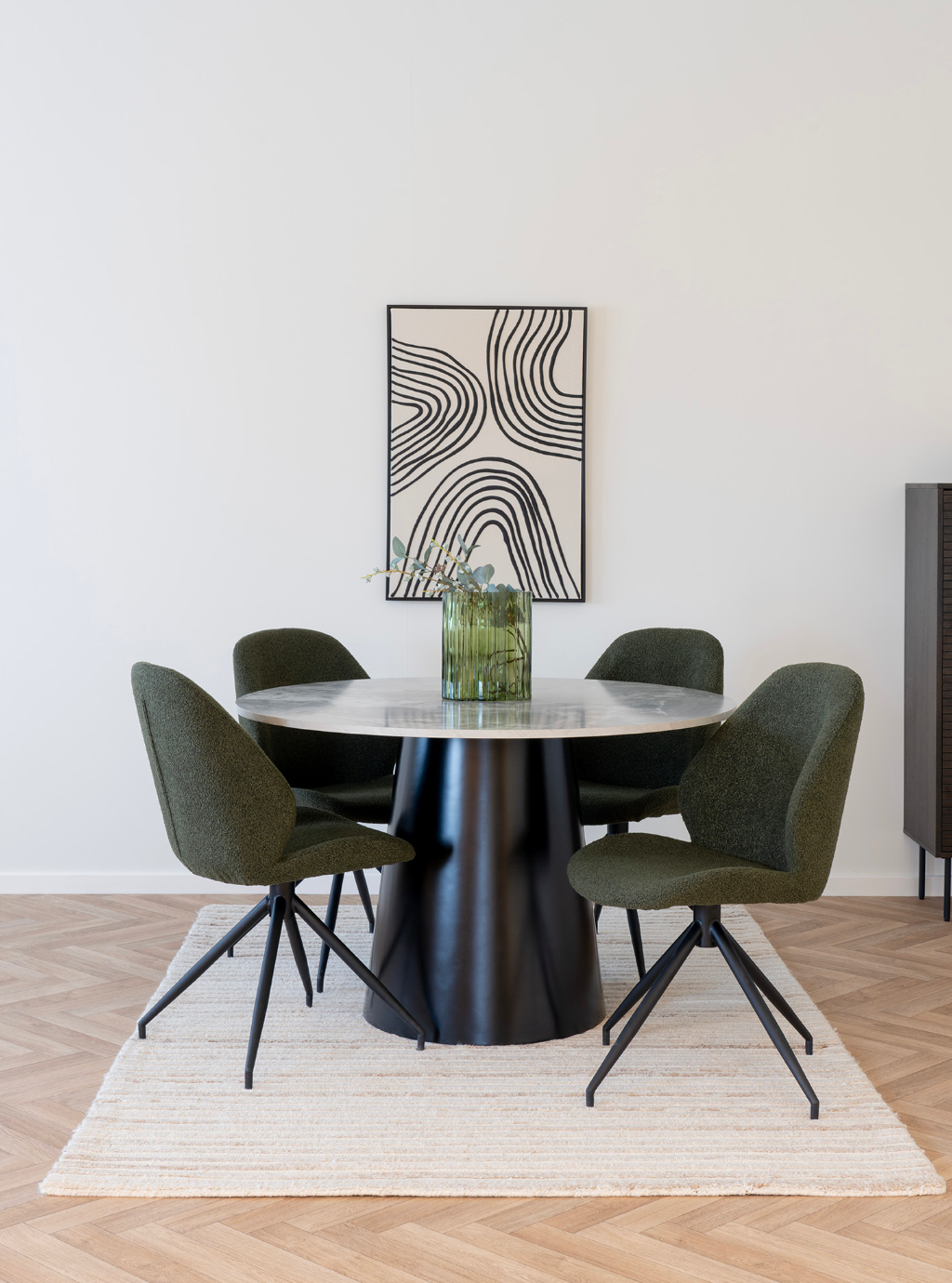 House Nordic Trivio Eetkamerstoel – Bouclé – Zand met Grijze Poten