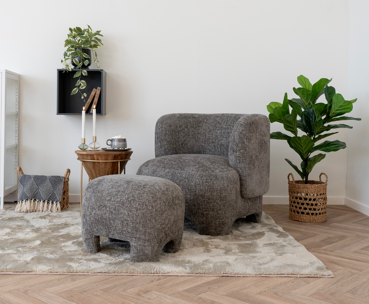 House Nordic - Turin Fauteuil – Bouclé Bekleding & Draaibare Poot – Naturel – Hoogte 100 cm