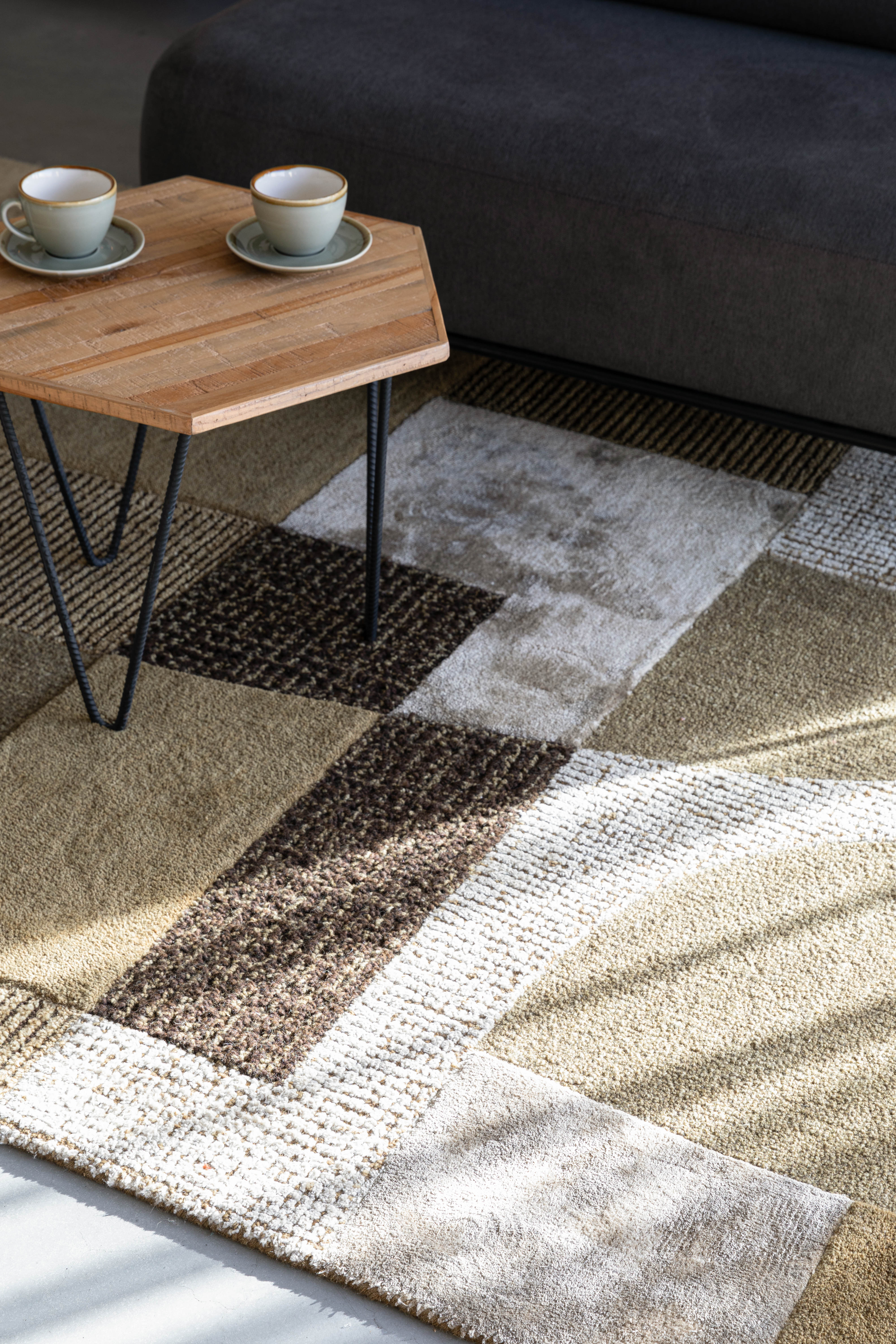 Dit handgemaakte vloerkleed Silvan steelt de show door zijn grafische vlakverdeling. Elk vlak heeft een andere hoogte dat een verrassend effect geeft. Wol in combinatie met viscose, de kleuren olijfgroen in combinatie met grijstinten, stralen een aardse stijl uit. Silvan past goed binnen de interieurstijlen van nu en is een echte eyecatcher!