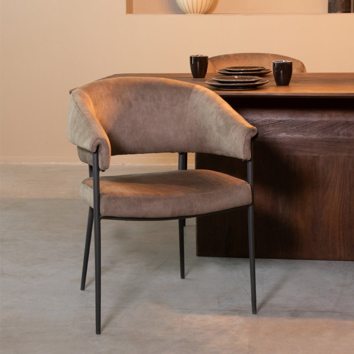 LABEL51 Eetkamerstoel Comfy - Taupe - Micro Suede - Zwart Onderstel