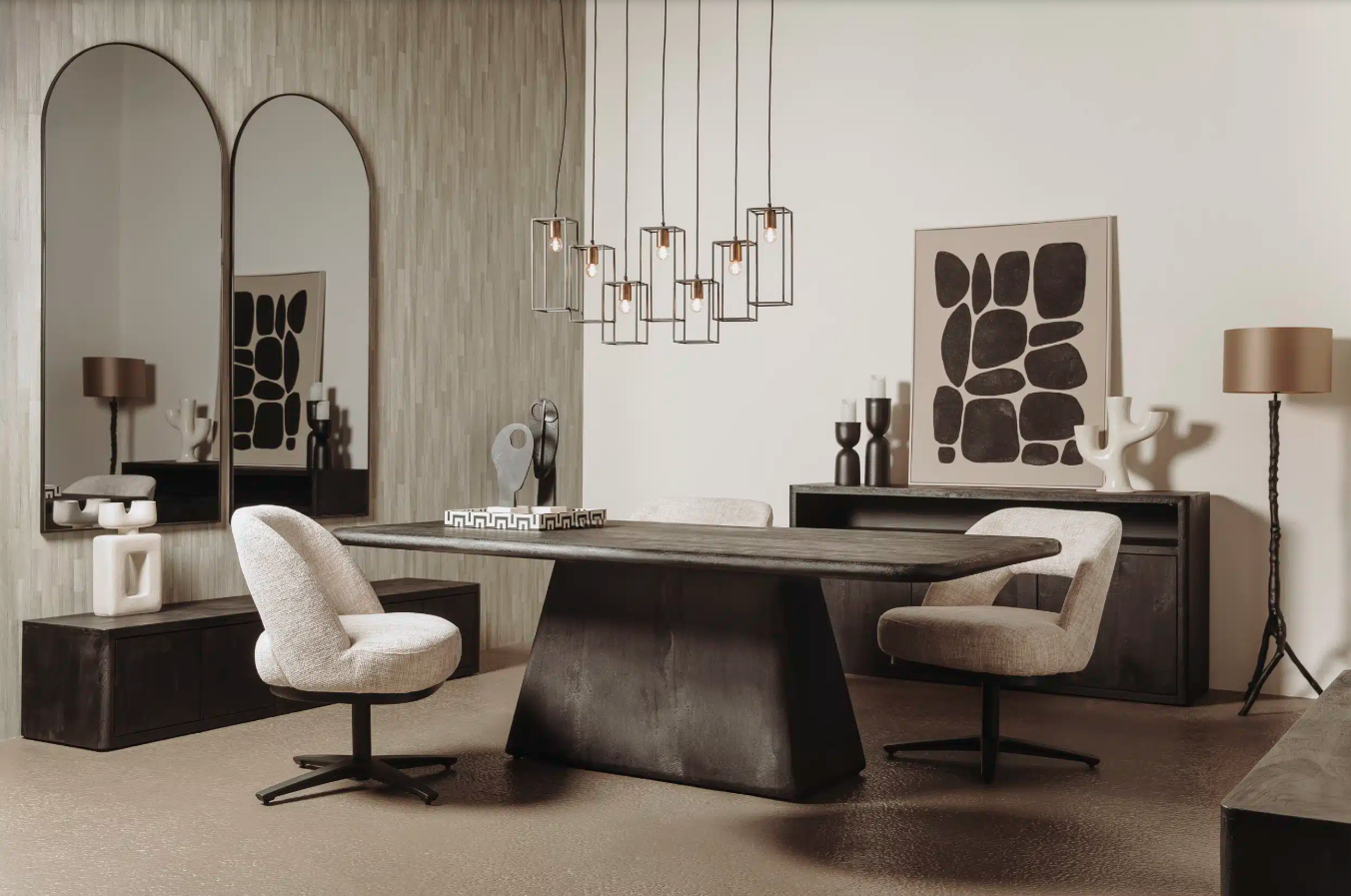 Tower Living Eettafel Taviano – Massief Sheeshamhout & Zwart Metaal – IndustrieelVan €789,-