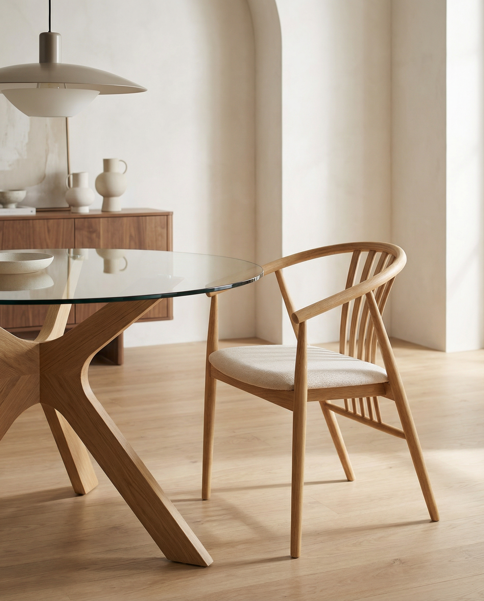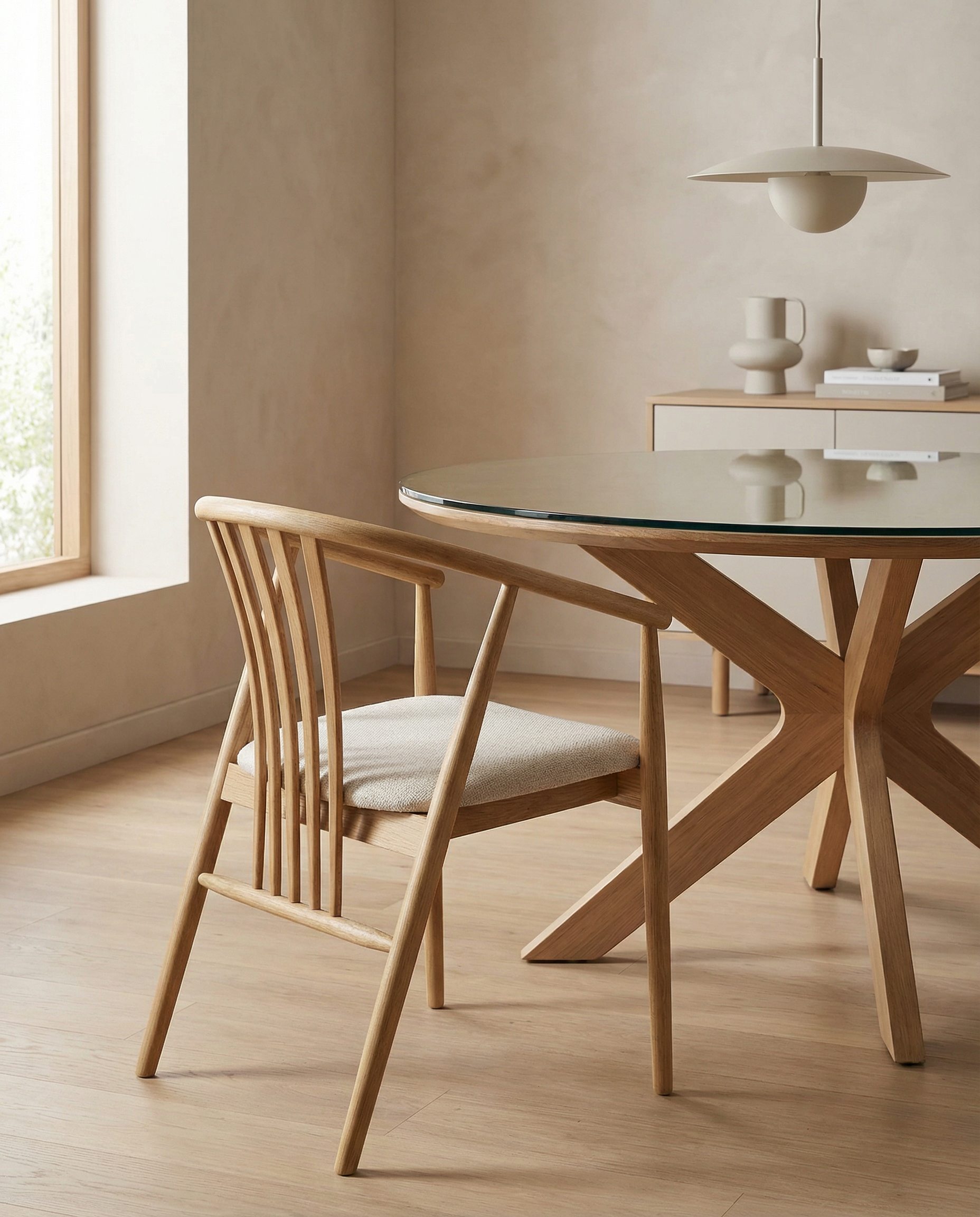 Dankzij de ergonomische zithoogte en comfortabele vulling is Agustin uitermate geschikt voor dagelijks gebruik aan de eettafel. Het lichte, open ontwerp behoudt een luchtige uitstraling zonder in te leveren op stabiliteit of stevigheid. Een elegante keuze voor wie functionaliteit en esthetiek wil samenbrengen.