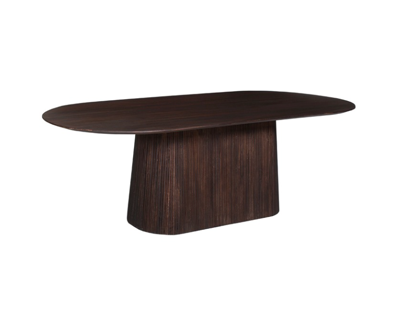 Deze ovale Japandi eettafel straalt diepte en verfijning uit dankzij het donker mangohout. De warme, diepe houttint in combinatie met de zachte ovale vorm zorgt voor een rustige maar krachtige uitstraling. Ideaal voor lange diners en stijlvolle eetruimtes waarin natuurlijke materialen en balans centraal staan. Het tijdloze ontwerp maakt deze tafel een solide basis binnen een Japandi interieur.