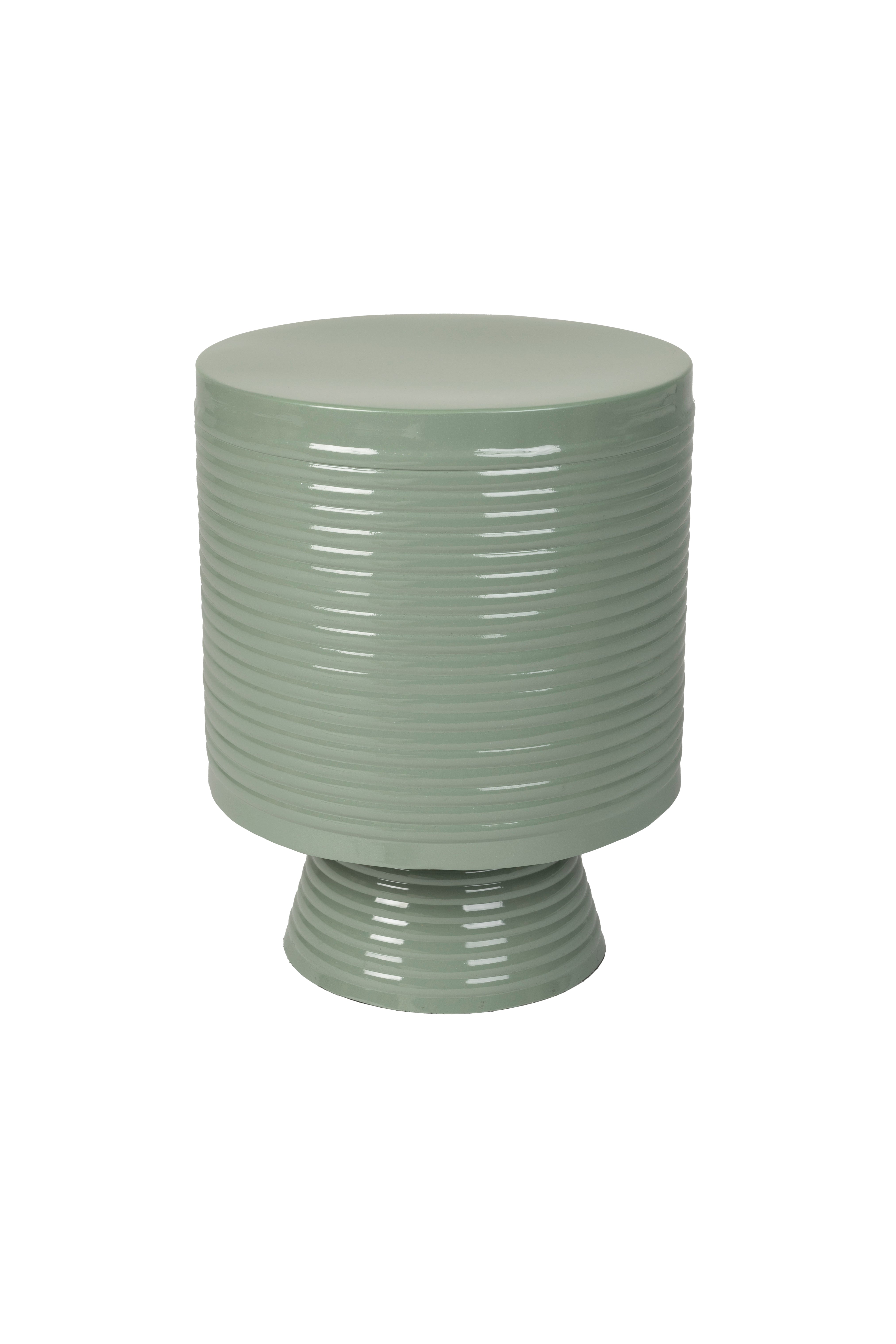 De Sven bijzettafel is een chique toevoeging aan je interieur. Deze metalen trommeltafel, versierd met trendy kleuren, heeft een rond silhouet met stijlvolle lijnen en een kegelvormige voet. Hij is gemaakt van metaal en straalt eigentijdse elegantie uit.